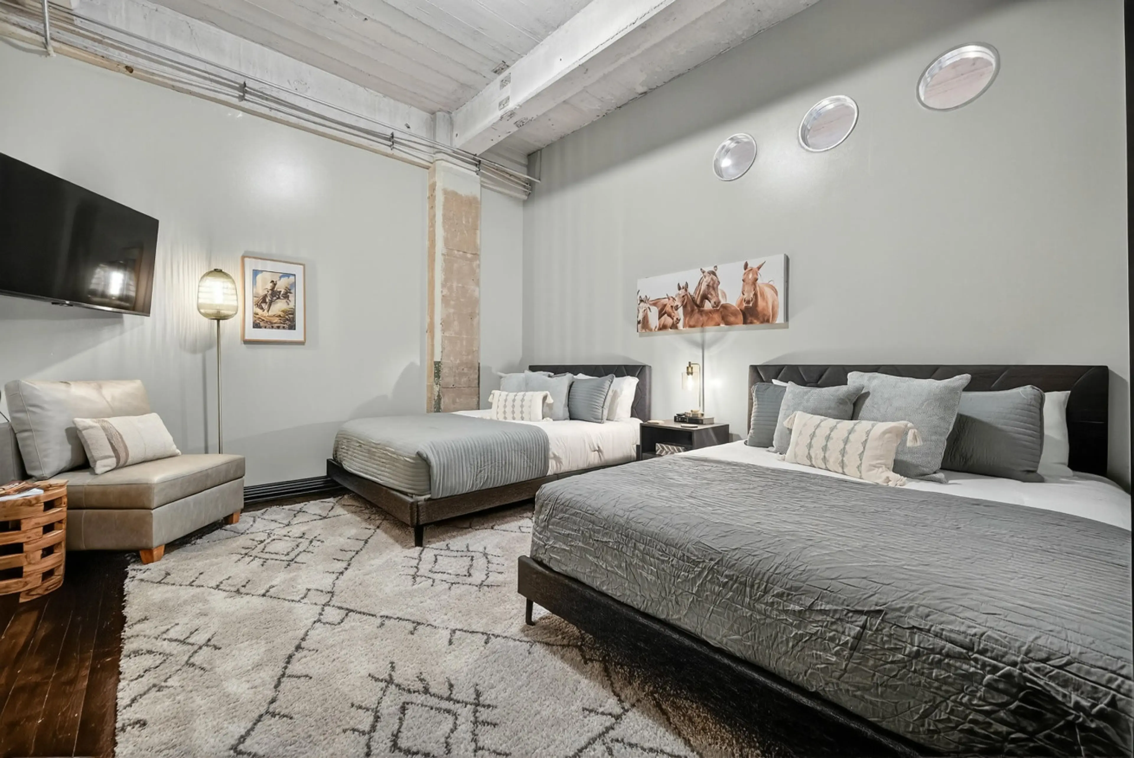 A chic downtown Dallas loft blending industrial design with classic Texas charm. Enjoy skyline views, rich decor, and modern comforts in the heart of the city. Steps from top restaurants, bars, and landmarks, this stylish retreat offers a unique stay with a true Dallas vibe. Perfect for couples, bus...