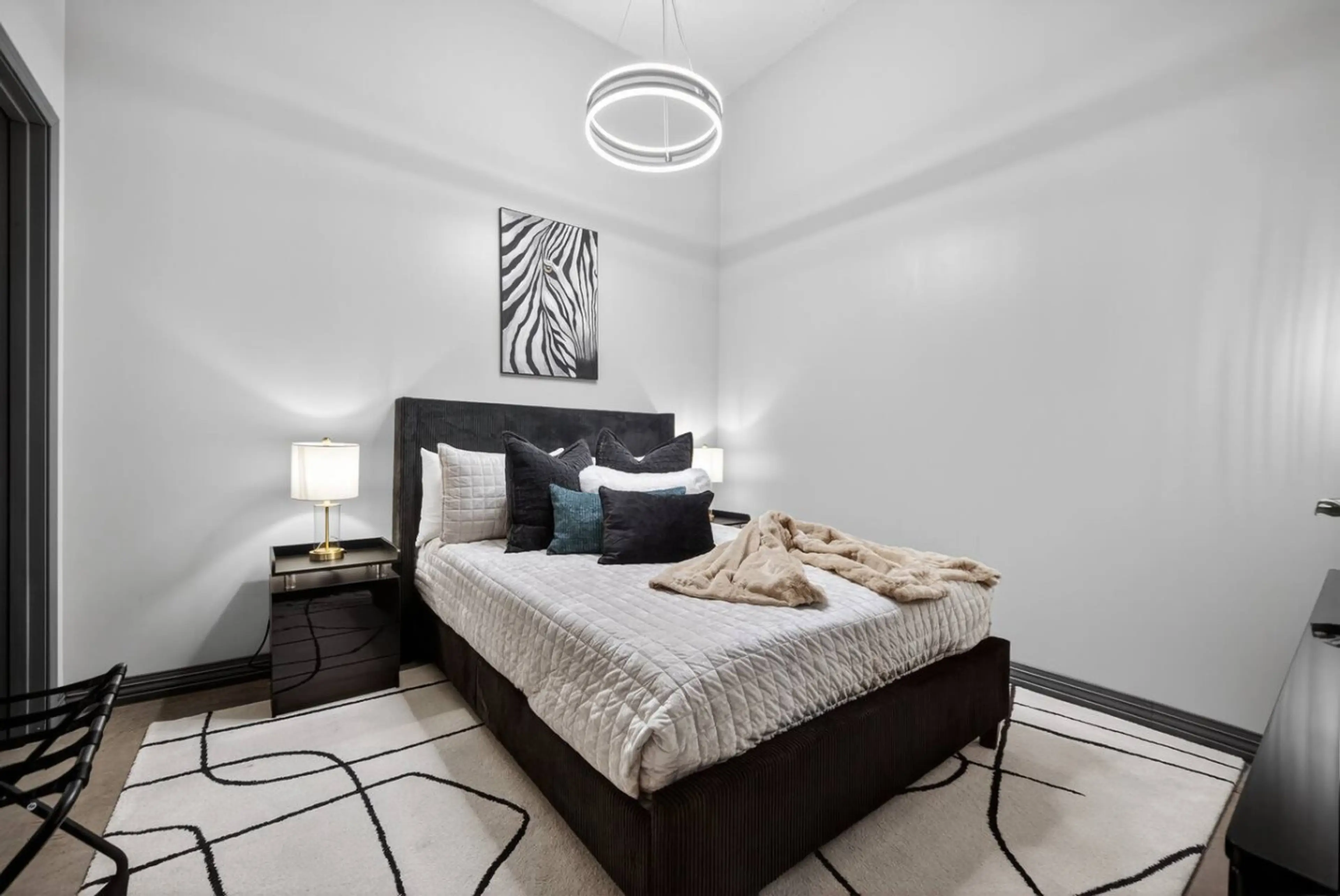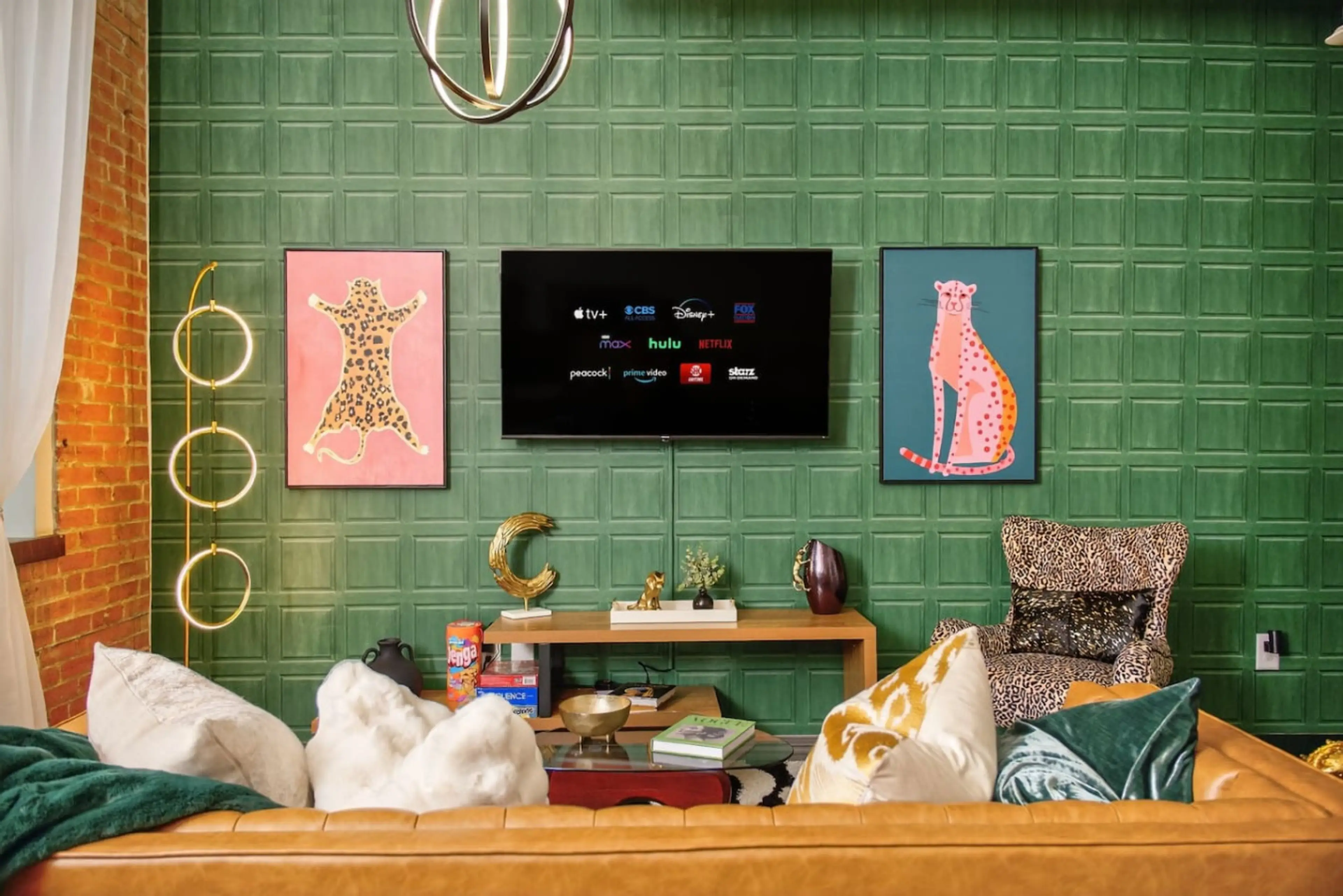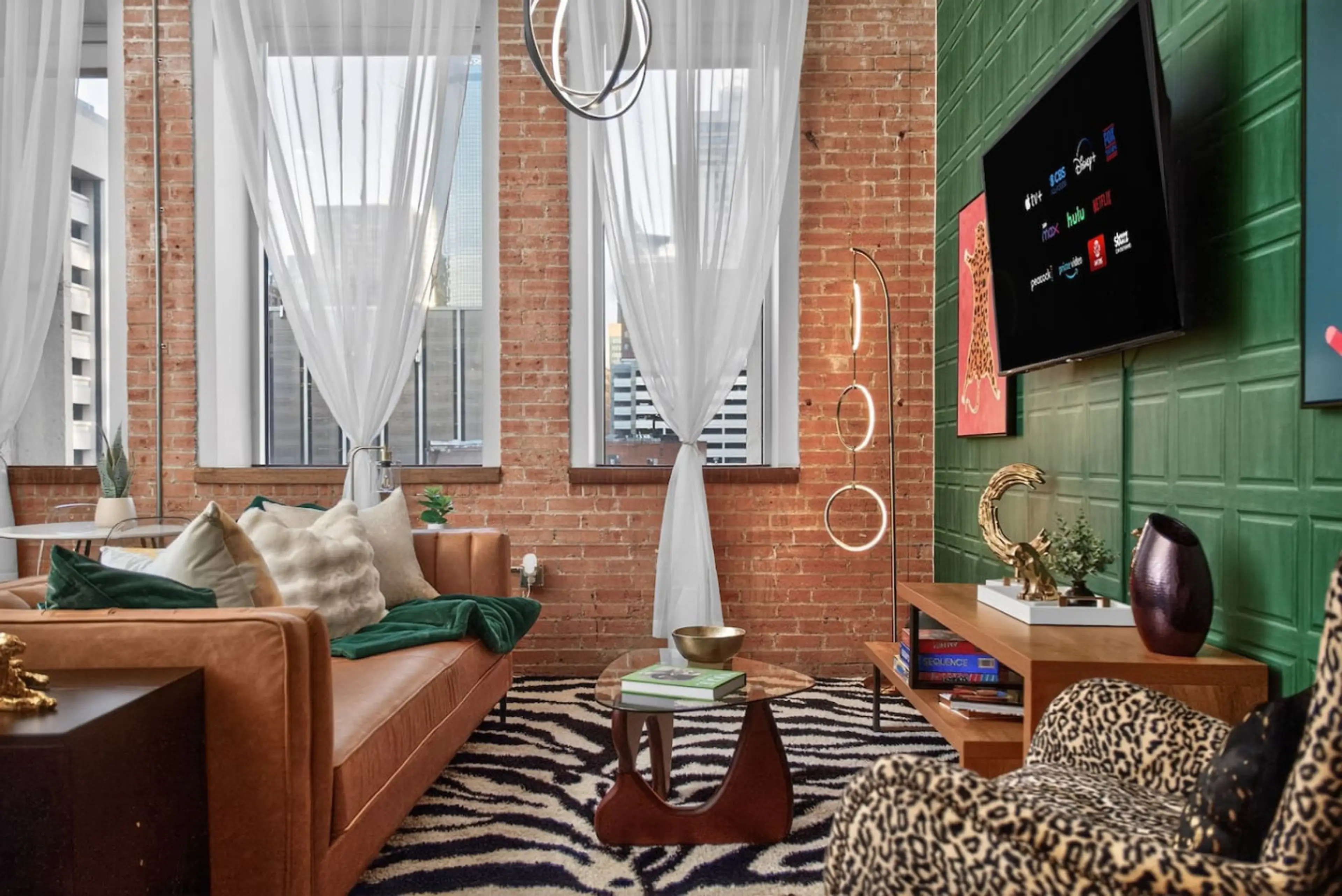 Experience a funky, colorful stay in this urban downtown Dallas flat! The Leopard Lounge offers a spacious 2-bedroom - 2 bath, comfortably accommodating groups with separate living areas. Includes free valet parking, a gym, pool, and game room with a pool table—plus one complimentary breakfast. Walk...